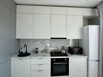 Квартира готова к заезду: продуманный ремонт, выполненный современными материалами, остаётся качественная встроенная мебель — кухонный гарнитур и большой шкаф в прихожей. <...